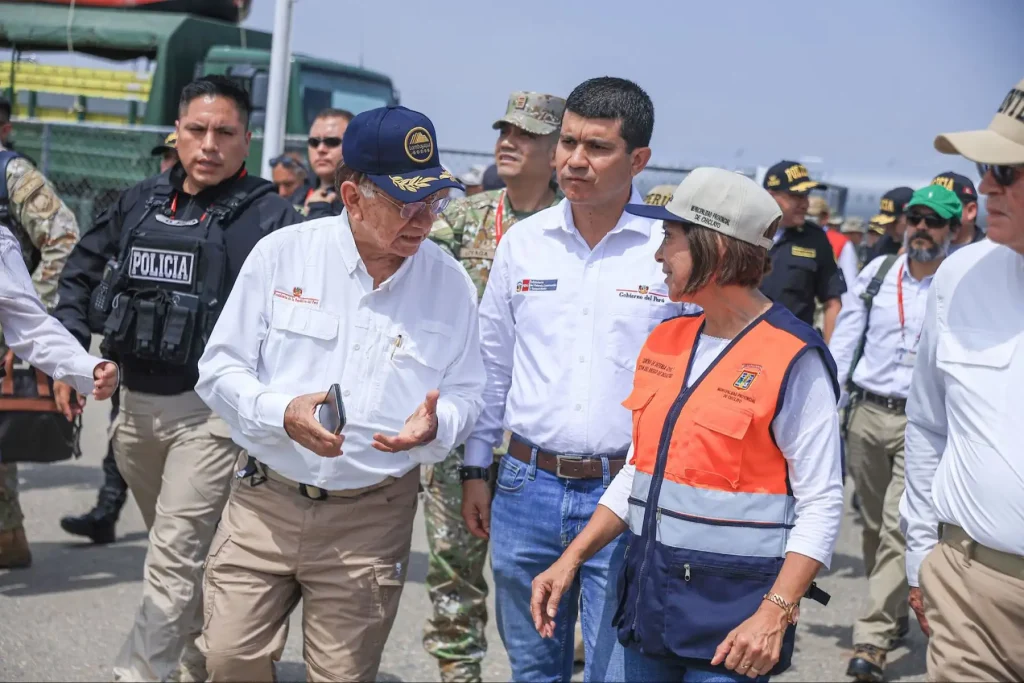 Balcázar, desarrolla una visita de trabajo en la ciudad de Chiclayo (Lambayeque), con la finalidad de evaluar las acciones desarrolladas frente a los desastres por las fuertes precipitaciones pluviales. El mandatario llegó al Grupo Aéreo 6, en la región Lambayeque, siendo recibido con honores por las tropas acantonadas en esa zona del país. Se espera que en dicha ciudad del norte del país, el jefe de Estado reciba un informe sobre las acciones desarrolladas hasta el momento. En dicha visita de supervisión, el mandatario es acompañado por la titular del Consejo de Ministros, Denisse Miralles; y los ministros del Interior, Hugo Begazo; y de Defensa Luis Arroyo. Cabe recordar que hace algunos minutos, la cuenta oficial de la Presidencia de la República anunció el viaje del jefe de Estado a esta zona del norte del Perú. «El presidente José María Balcázar, junto a los ministros de Estado, se dirigen a Chiclayo para evaluar las acciones frente a los desastres en esta zona del país«, refiere. Como se recuerda, la región Lambayeque es una de las zonas del norte del país que viene siendo afectada por las fuertes precipitaciones pluviales, debido a la presencia de El Niño Costero.