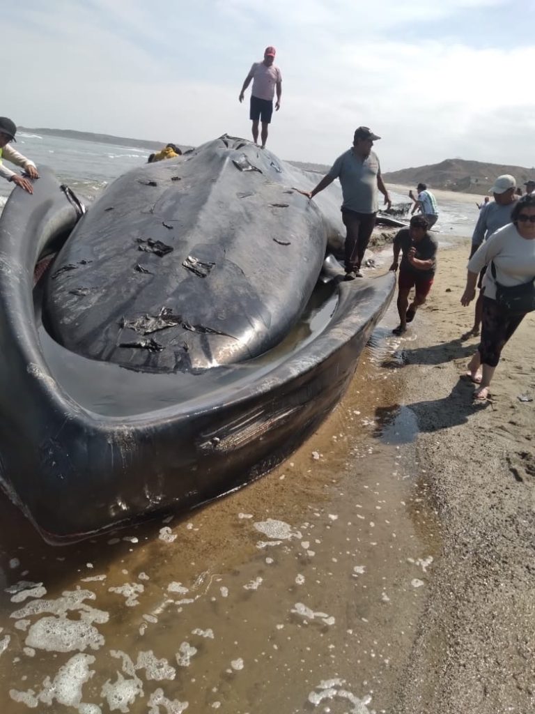 Hasta el lugar ha llegado personal del Instituto del Mar del Perú (Imarpe) para iniciar una investigación e iniciar el protocolo de levantamiento del cuerpo del enorme animal marino.
